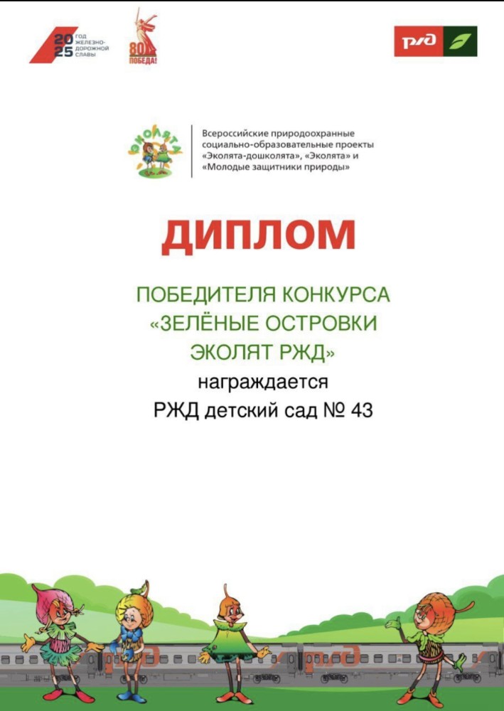 РЖД детский сад № 43 стал победителем в конкурсе «Зелёные островки Эколят РЖД»!